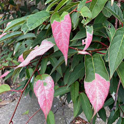 Usually described as a vigorous twining climber, which would exclude it from this list of plants You can grow Actinidia Kolomikta in a large container or restrict its roots in the ground, and prune it to keep it within an acceptable size for your space. At Aberglasney Gardens, there is one growing happily in a small planting pocket in the patio, next to the building wall, outside the café. Grown for the leaves which have white and pink tips. To bring out the best colour in the leaves, grow in full sun, in a south-facing spot, in any type of garden soil. It is hardy throughout UK and Ireland, even in a severe winter. Height and spread, in excess of 400cm if left unpruned.