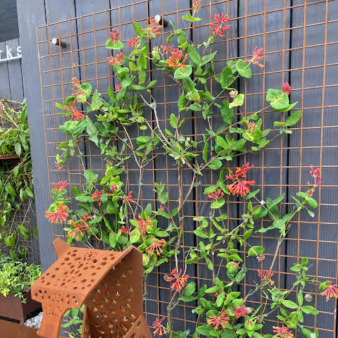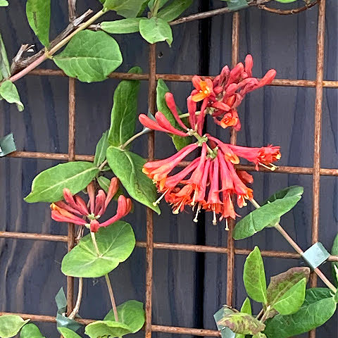 Although it has little to no fragrance, this honeysuckle provides plenty of interest with bright scarlet flowers, blue-green leaves and inedible red berries. It is semi-evergreen, but may lose all its leaves in a severe winter. However, it is fully hardy and so will regrow the leaves the next spring. Grow in full sun or partial shade. Avoid dry conditions and plant well away from the base of a wall or tree. Height 400cm and 200cm spread.