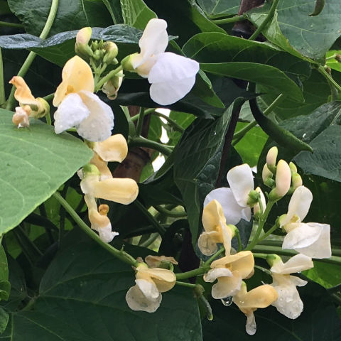 Originally introduced to the UK as ornamental plants because of their attractive flowers. Cover a tower, arch or trellis with flowers using what is more commonly known as a runner bean. Usually grown as an annual, but runner beans may overwinter in soil that does not become waterlogged or where the soil is not frozen for prolonged periods. To make a tower, use 3-7 canes pushed in the soil in a circle and secure together at the top. Grow one or two runner beans at each cane. The plants will quickly climb the canes and start flowering. Pick the bean pods regularly for continued flower production. I prefer white-flowered runner beans, which produce a white bean inside the pod. Try ‘Czar’ or ‘White Lady’. But runner beans offer a range of flower colours, ‘Painted Lady’ has bi-colour flowers of orange-red, while ‘Scarlet Emperor’ has red flowers.