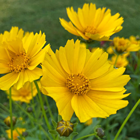 Commonly known as tickseed, Coreopsis verticillata ‘Grandiflora’ has fine, almost thread-like foliage and carries the flowers on stems held above the foliage. Flowers are 3cm – 5cm across and appear in mid to late summer. Regular deadheading will encourage continued flower production well into autumn. Grow in full sun or partial shade in well-drained soil. It may fail to thrive in clay soils. Height and spread 60cm. Hardy throughout UK and Ireland.