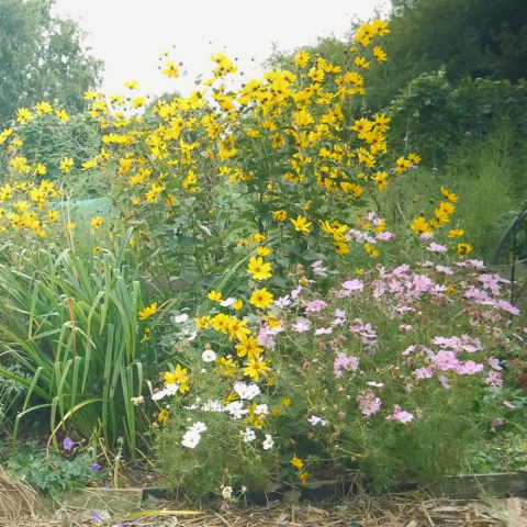 Every year, I wish I had planted more daisy-like flowers, in particular, because they can fill our gardens with strong, rich colours at the end of summer and during autumn. The light from the sun is more mellow than during high summer and the whole garden takes on a glorious glow. Autumn hasn’t fully kicked in quite yet, although the night temperatures are distinctly lower. However, there is still plenty of time to be spent in the garden, enjoying the flowers, wildlife and harvests.