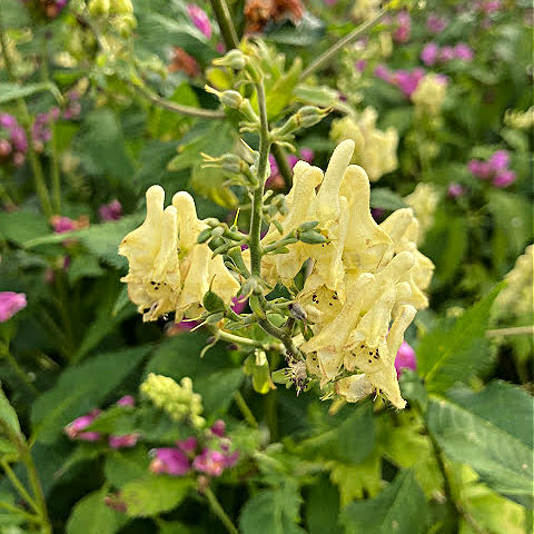 Commonly called yellow monkshood or wolfsbane, you may find it in the garden centre as Aconitum ‘Lamarckii’. I saw this plant on a visit to a Llysdinam Gardens in mid Wales and I was intrigued by it growing near the edge of their woodland garden. It’s an herbaceous perennial with an upright habit. Grow in full sun or partial shade, in moist, but well-drained soil. It grows to 120cm (3ft11in) and flowers during mid and late summer. This plant is toxic, do not eat any part of it and wear protective gloves when handling.