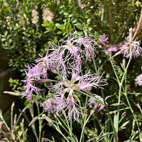 This plant offers interest throughout the year. An evergreen plant that forms a cushion of foliage and during summer flower stems appear above the grey-green leaves. The flowers have five petals that are fringed and look shaggy and to add further interest, they are sweetly scented. Grow in full sun, in alkaline or neutral soil that is well-drained. Hardy across UK, Ireland and the rest of Europe, even during harsh winters. Deadhead regularly to encourage continued flowering. Propagate by taking softwood cuttings in summer, just make sure you take non-flowering material.