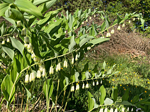 Every spring, I look forward to seeing the new growing tips of Solomon’s Seal pushing up through the soil. The creamy flowers dangle from the arching stems beneath the leaves and look precariously fragile. But inevitably, I watch them sway and dance in the spring breezes, resolutely held in place until the blooms fade. They often produce a berry, which can be toxic to humans.