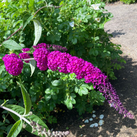 Buddleia has the reputation of becoming a large and unruly shrub, and this can happen if they are left to grow without pruning. However, they can be greatly improved by very hard pruning each spring. They are known for attracting bees, pollinating insects and in particular, butterflies to the garden, hence their common name of the Butterfly Bush. Regular deadheading encourages continued flower production. Buddleia davidii self-seeds freely and can become a nuisance and invasive.